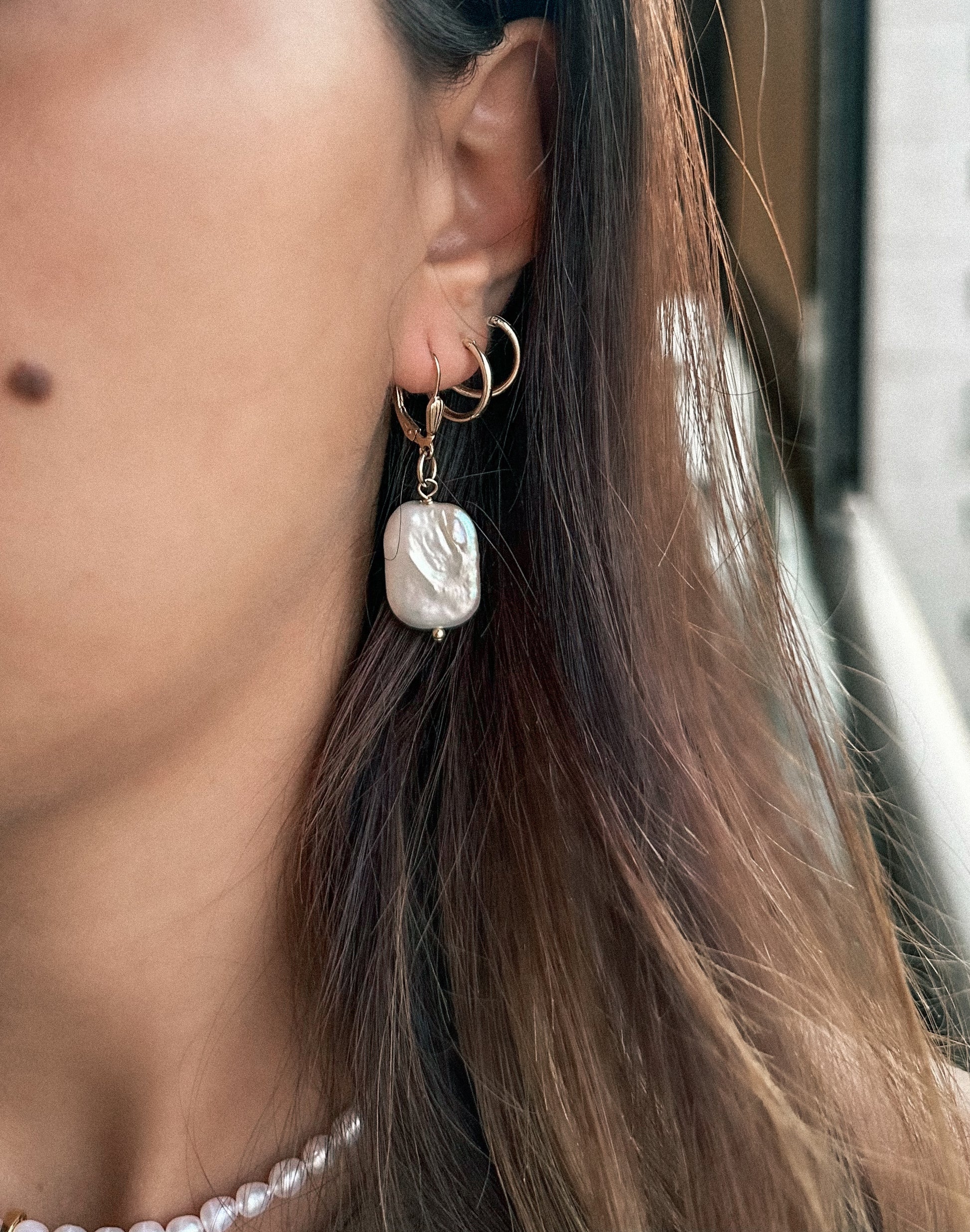 עגילי גולדפילד עבה עם פנינה טבעית מיוצרים בעבודת יד 🤍  להוספת ניצוץ לכל לוק ✨