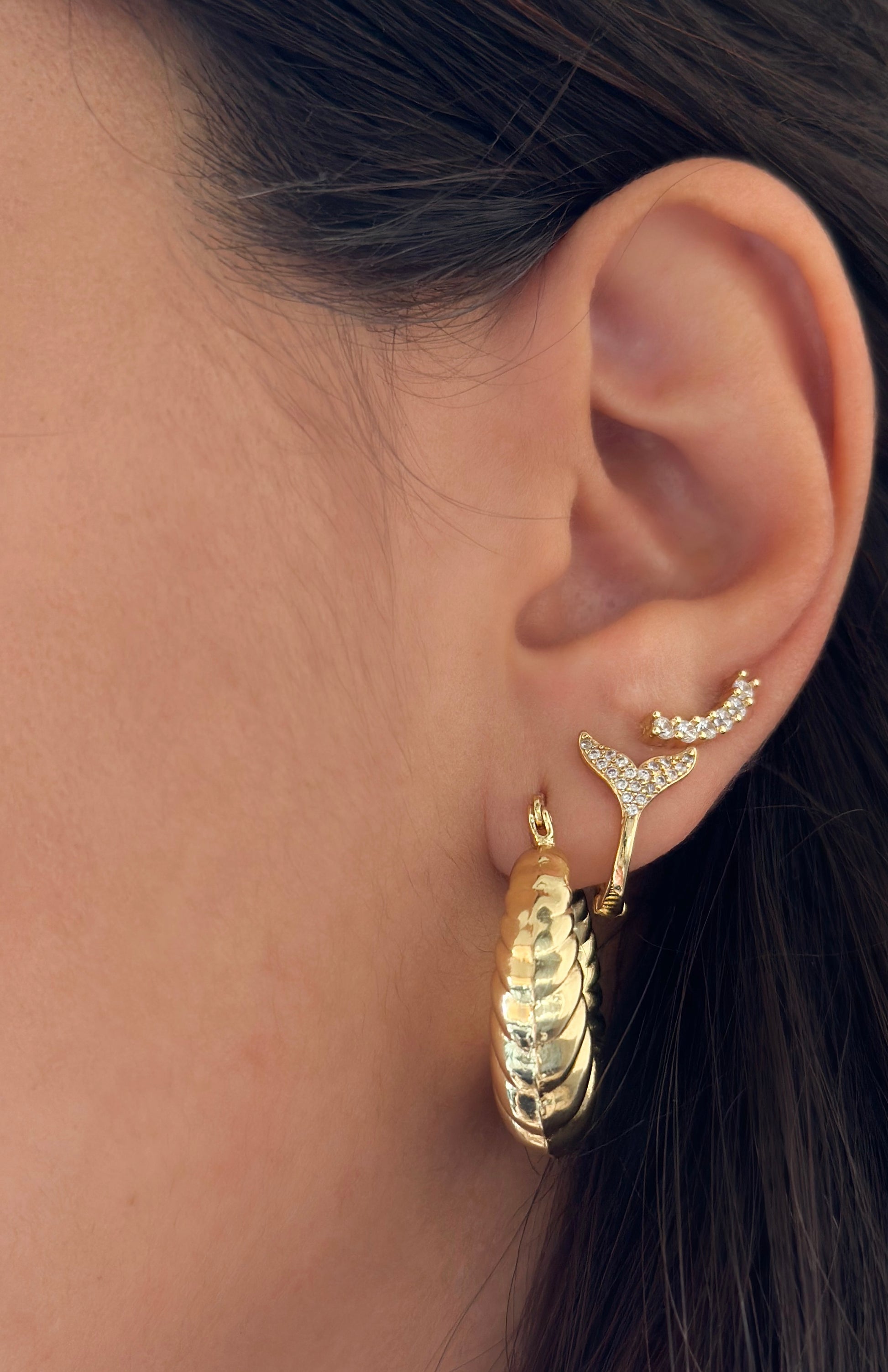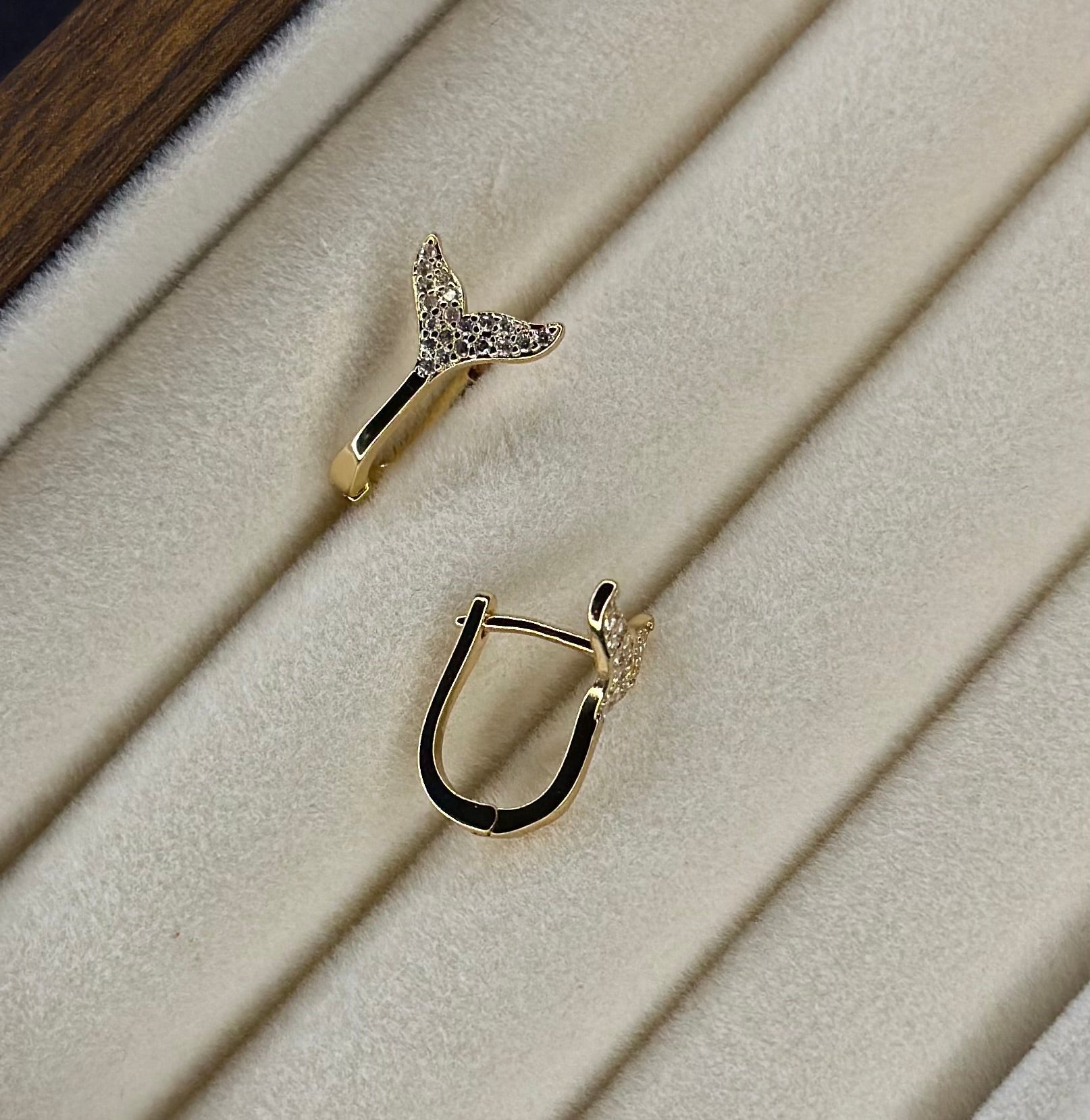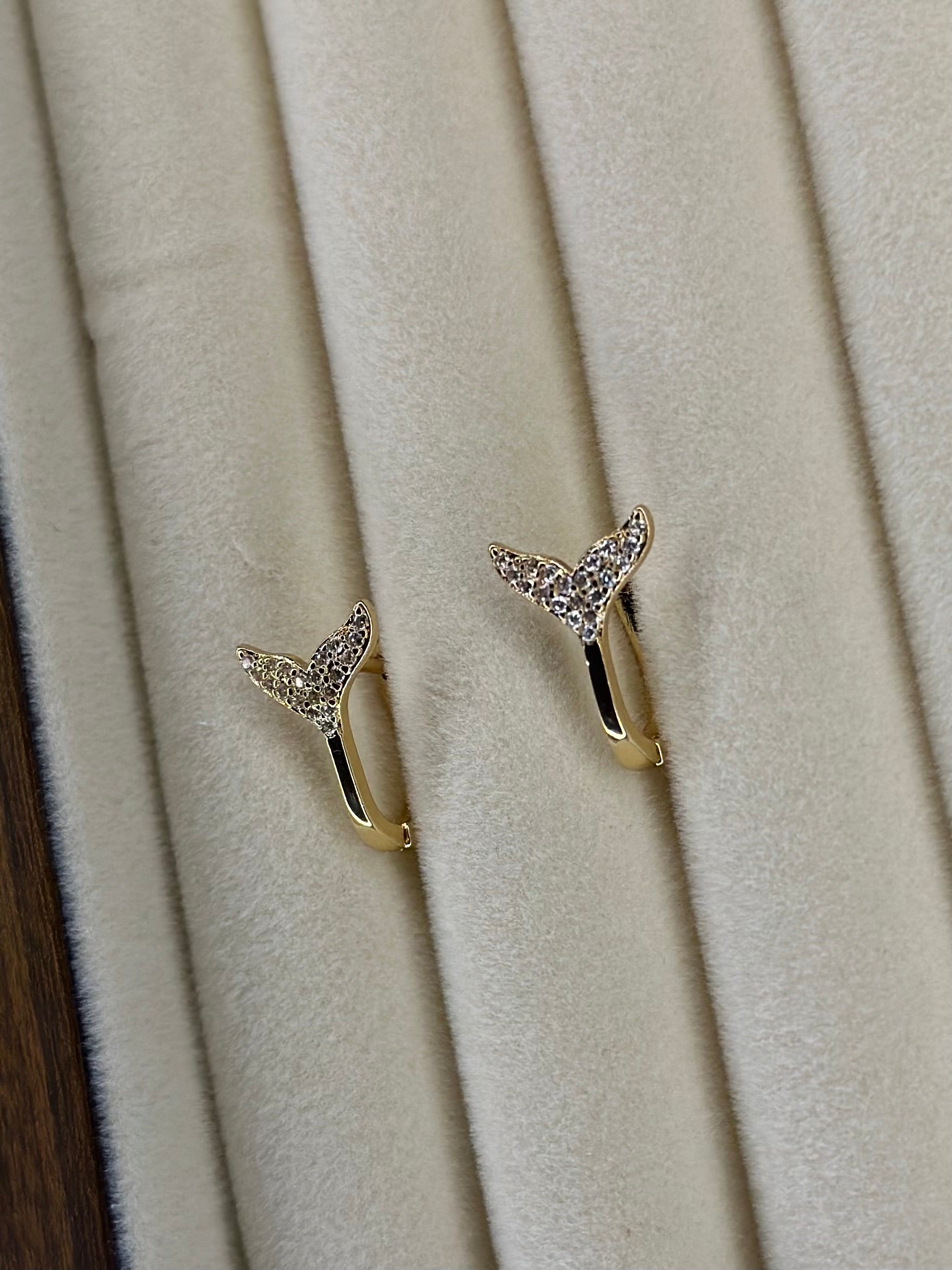 עגילי גולדפילד בצורת סנפיר עם זרקונים 🤍