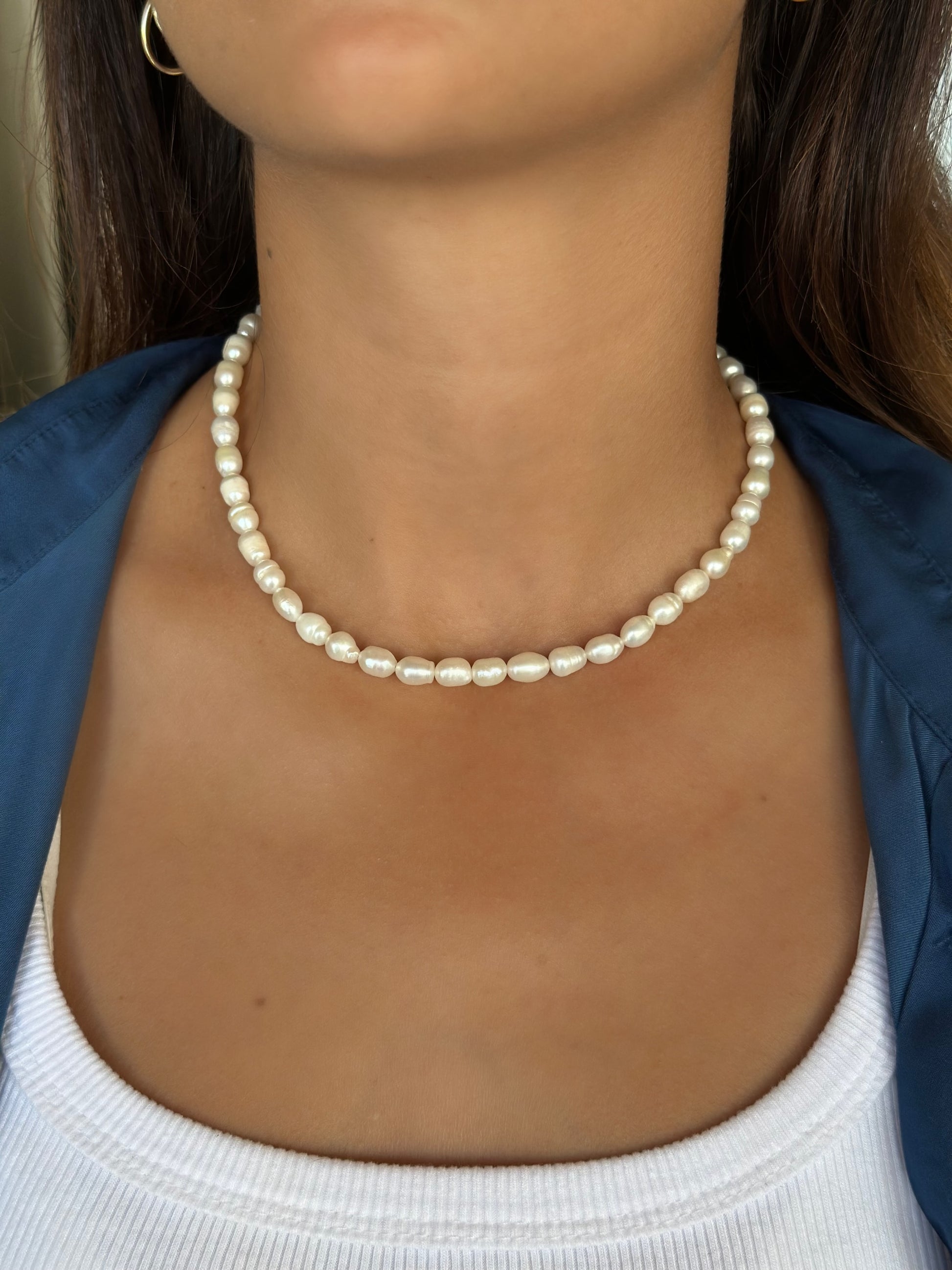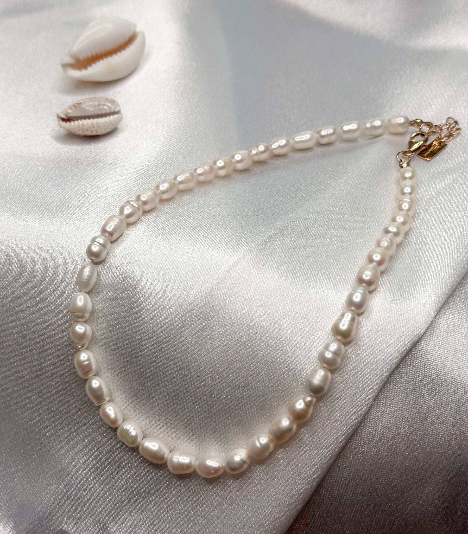 שרשרת מיוצרת בעבודת יד מפניני מים מתוקים טבעיות, עם סוגר מוזהב איכותי מגולדפילד ✨